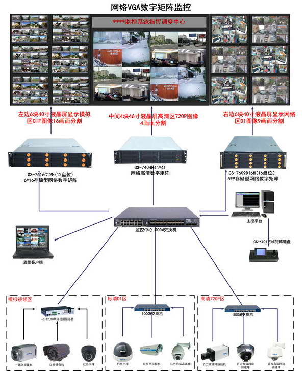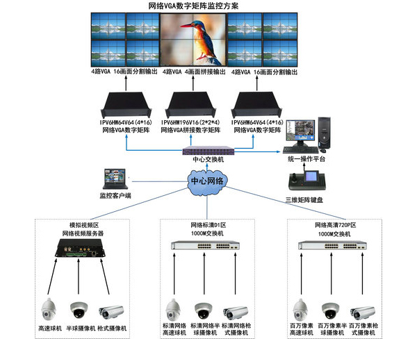 工廠企業(yè)監(jiān)控系統(tǒng)一般分為模擬監(jiān)控和網(wǎng)絡(luò)監(jiān)控兩種,系統(tǒng)架構(gòu)如下圖所示: